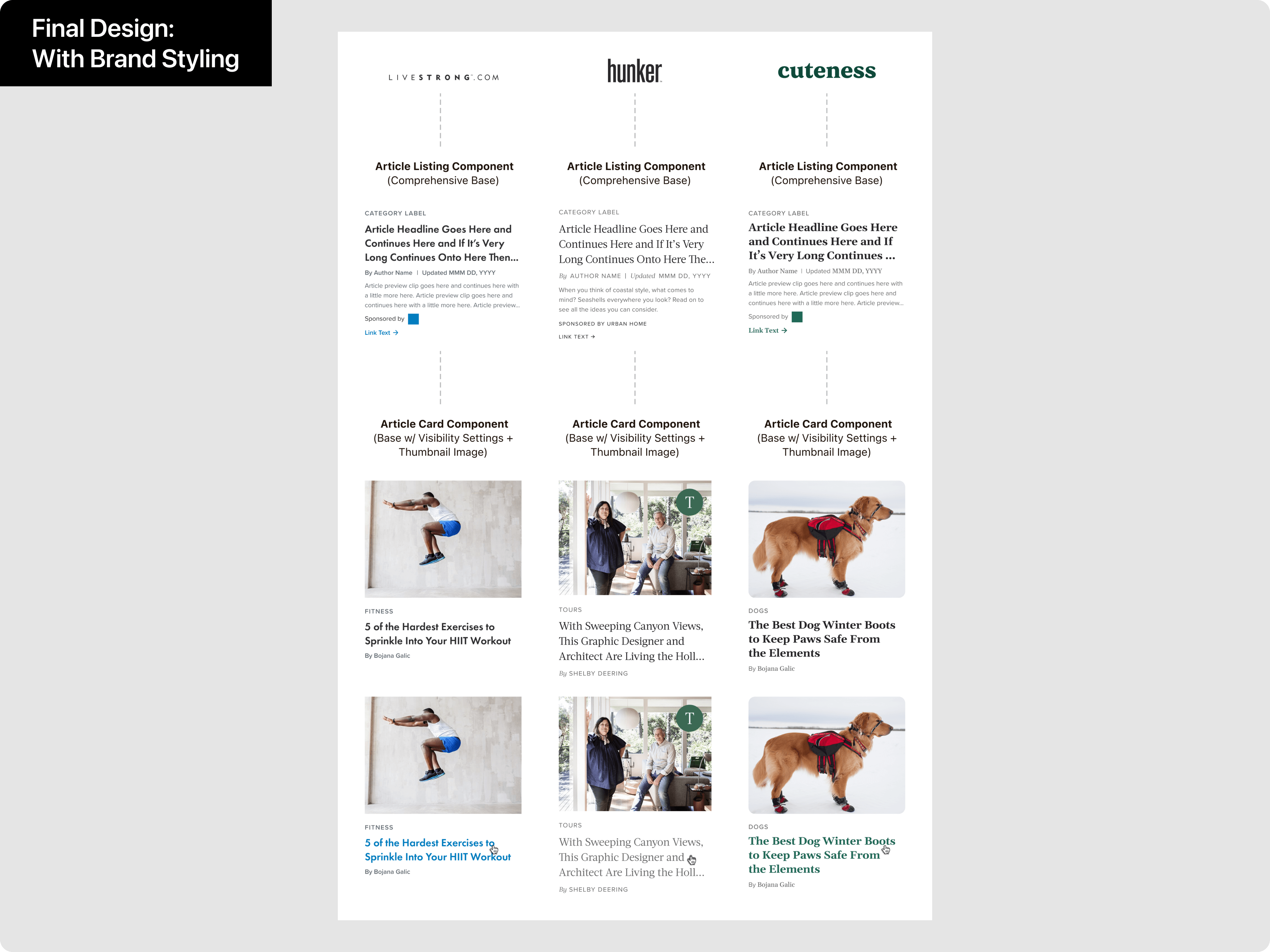 - The design, layout, and styling of article cards within any given Leaf Group site becomes standardized allowing for a better user experience.